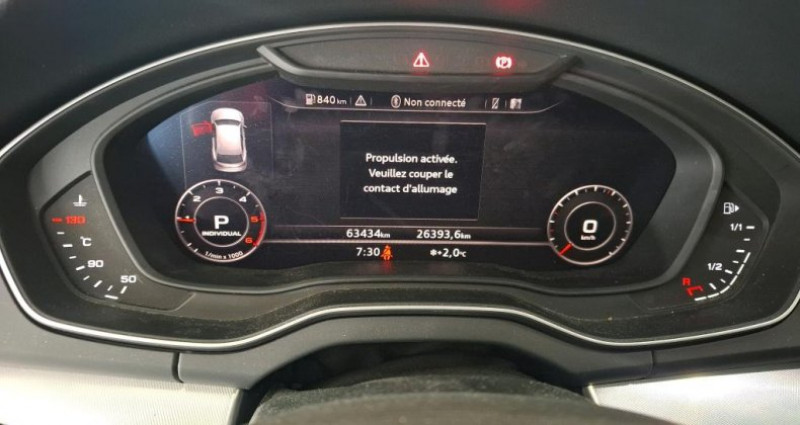 cylindrée : 1968 cm3 nb. vitesse : 7 equipements audi virtual cockpit combiné d'instruments entièrement numérique de 12.3 avec affichage haute résolution, mmi navigation plus avec mmi touch, audi phone box compartiment spécifique situé dans la console centrale av permettant d'y ranger le téléphone portable, caméra de recul, pack audi side assist, audi connect sécurité et service inclut les services/applications des catégories messervices et monvéhicule, audi parking system plus: système accoustique et visuel d'aide au stationnement av et ar, audi smartphone interface, audi connect, climatisation automatique confort 3 zones, blocage électronique de différentiel eds, pack eclairage, pack rangement, applications décoratives en aluminium rhombus, audi sound system : amplificateurs 6 canaux 10 hp dont 1 central dans le tableau de bord et 1 subwoofer puissance totale 180 w, sièges av réglables électriquement avec réglage électrique de la hauteur d'assise du positionnement en longueur de l'inclinaison de l'assise et du dossier, sellerie cuir milano, vitrage acoustique pour les vitres de portières av, phares à led avec clignotants ar à led dynamiques, appui lombaire à 4 axes pour les sièges av réglages électriques horizontal et vertical, identification, 8 hp, sellerie en cuir/alcantara avec sièges av sport, peinture intégrale, vitrage privacy (vitres surteintées) avec vitrage acoustique pour les vitres de portières av, interface bluetooth, régulateur de vitesse incluant limiteur de vitesse, affichage de perte de pression des pneus, rétroviseur intérieur jour/nuit automatique sans encadrement (frameless), mmi radio plus, rétroviseurs extérieurs réglables dégivrants et rabattables électriquement, ecrous de roues antivol, volant 3 branches multifonction plus en cuir avec application chromée sur la branche inférieure et avec palettes de changement de vitesse, audi drive select, châssis dynamique, s tronic : boîte séquentielle 7 vitesses à double embrayage avec commande électrohydraulique, quattro avec technologie ultra, barres de toit transversales en aluminium anodisé, pack brillance, clé confort (keyless entry) + keyless go, pare/brise acoustique, vitres athermiques, capot de coffre à ouverture/fermeture électrique + déverrouillage/ouverture du hayon par le pied, préparation pour crochet d'attelage, audi pre/sense city, rampes de pavillon en aluminium, peinture métallisée noir mythic, roue de secours à encombrement réduit, jantes en aluminium coulé style 5 branches en v gris contrasté partiellement polies 8jx19 avec pneus 235/55/r19,